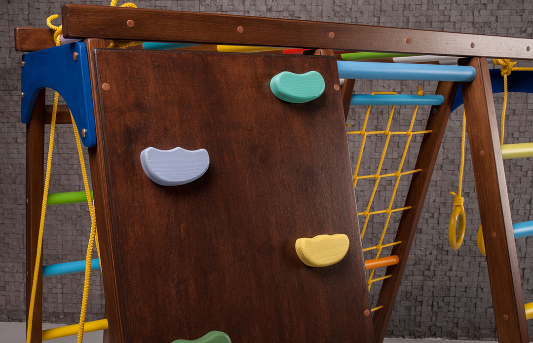 Climbing Wall is a multifunctional wooden toy (or equipment) that includes both entertaining and developing elements for kids from 1 to 6 y.o. It is made of solid wood (beech), so it could withstand up to 3-5 toddlers playing on it at the same time. This inside playset could serve your kids all-year-round. Health and fun, – all in one!