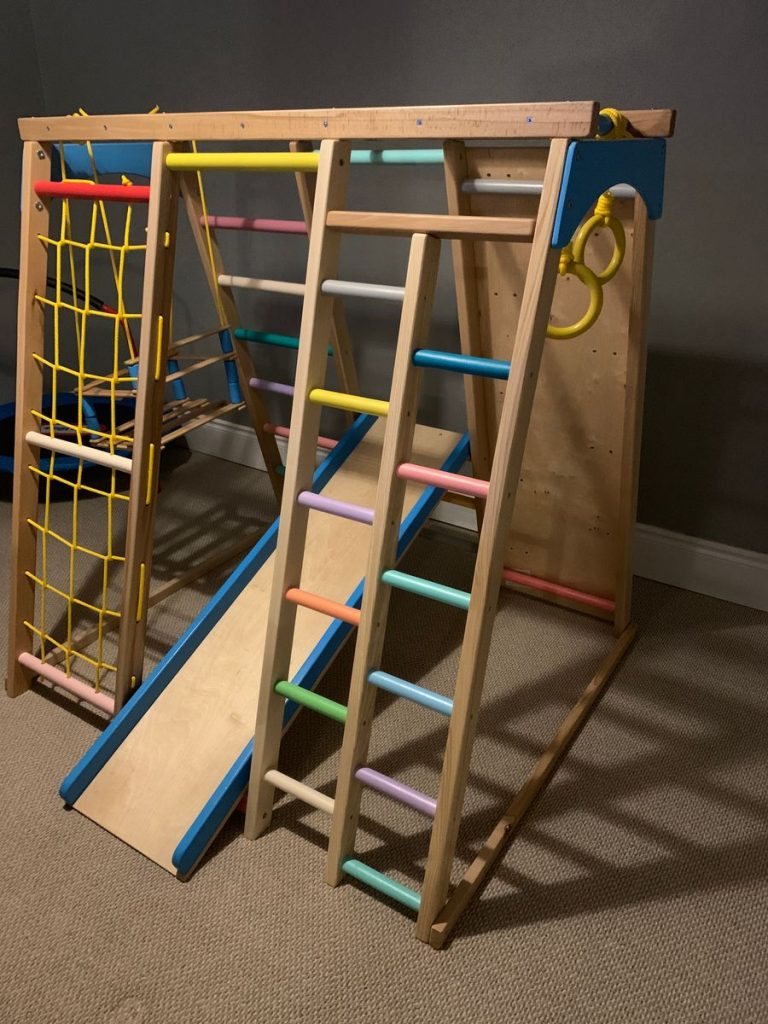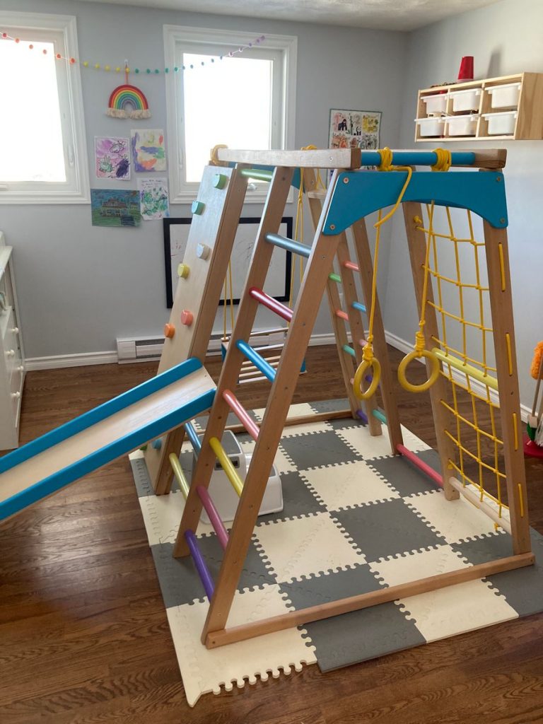 We LOVE our Climber! Our 3 year old is super busy and, as a child psychologist, I know kids function best when their natural drives are met – our daughter seeks out a lot of movement throughout the day and it is hard to fill that need when temperatures dip. This climber is gorgeous for in the home and provides much needed physical activity.