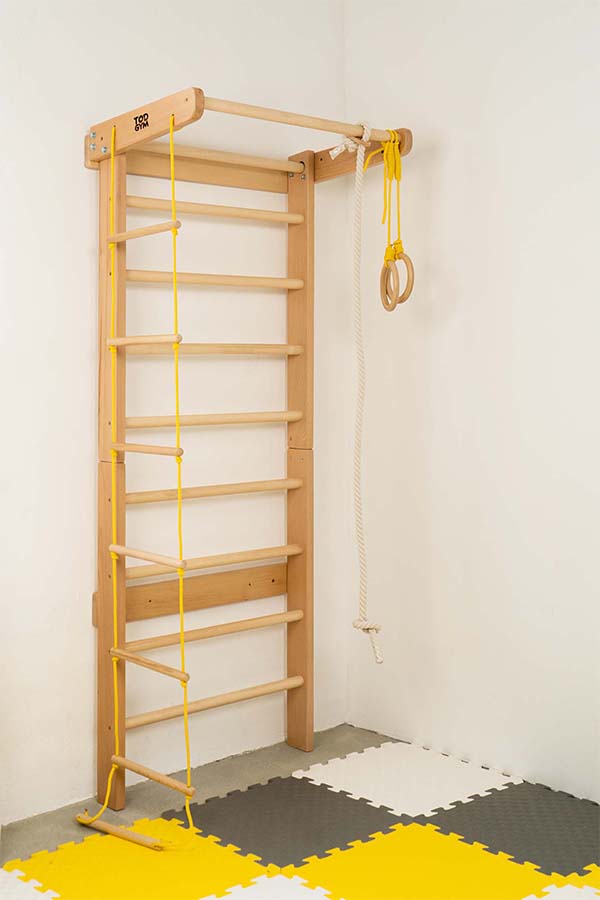 For teenagers and adults, this type of home equipment set is just a necessity, as many of us spend a lot of time in front of computers, phones or other gadgets. Adults could practice on the wall bars whenever they can, performing various physical exercises: hanging on the horizontal bar, pull-ups, various exercises for presses, push-ups, working on rings, planks, stretching and much more… In addition to the above mentioned exercises, adults can add dozens of other activities with extra accessories such as rings, rope, TRX set, small boxing bag, etc.